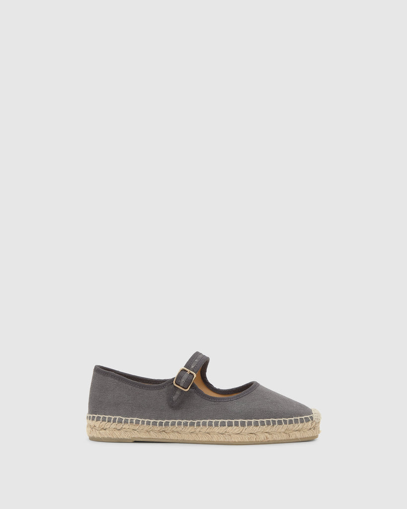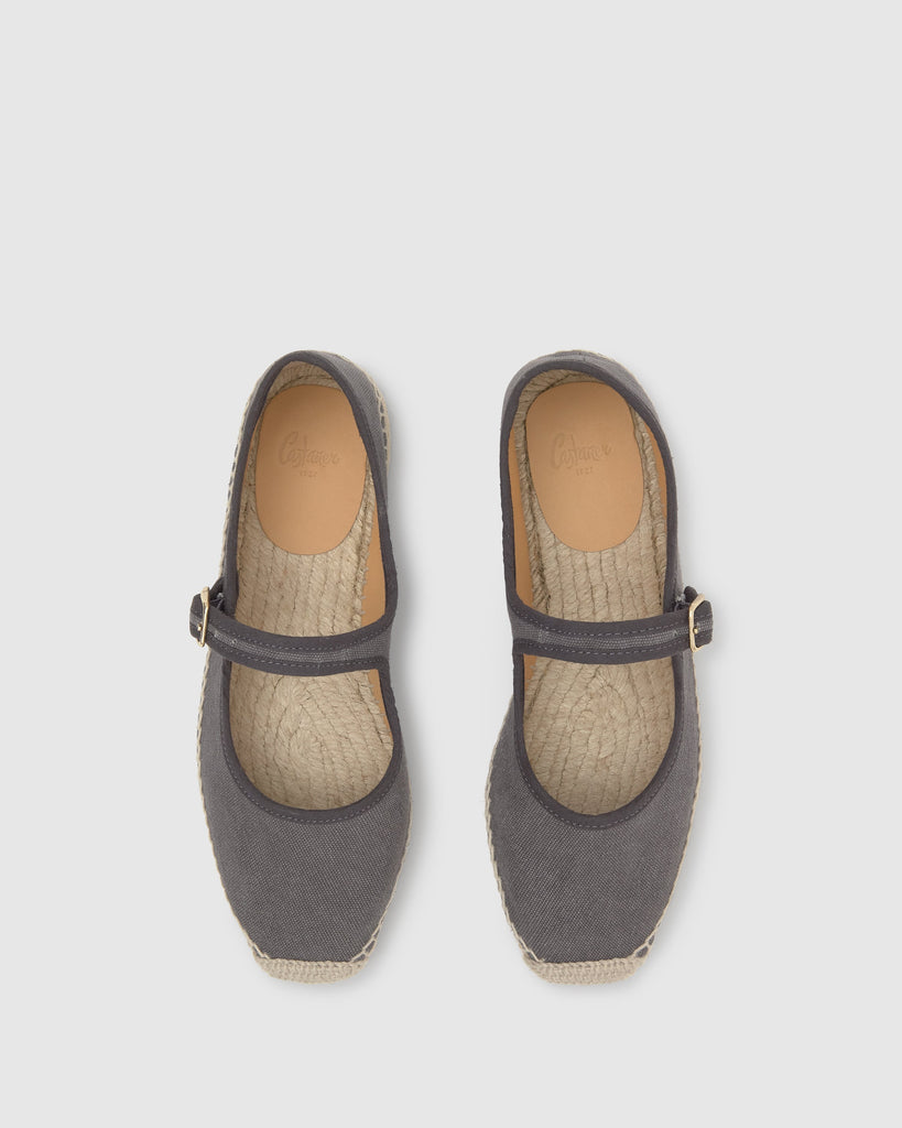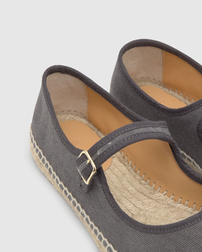 Alpargata plana Padua estilo mary-jane en algodón orgánico lavado con cierre de hebilla y suela de yute.