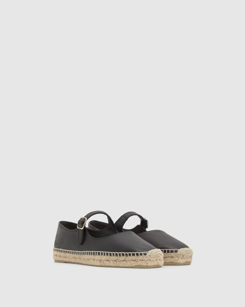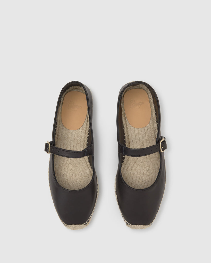 Alpargata plana Pepa estilo mary-jane en napa con cierre de hebilla y suela de yute.