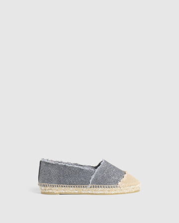 Kampala representa el look effortless y atemporal que todas anhelamos obtener. Confeccionadas en España en lino natural con acabado metalizado y cosidas a mano, las alpargatas Kampala presentan puntera cerrada redondeada y suela plana de caucho vulcanizado.