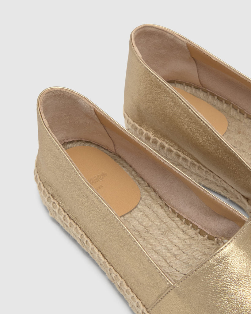 Alpargata plana Kenda estilo camping en piel metalizada y suela de yute.