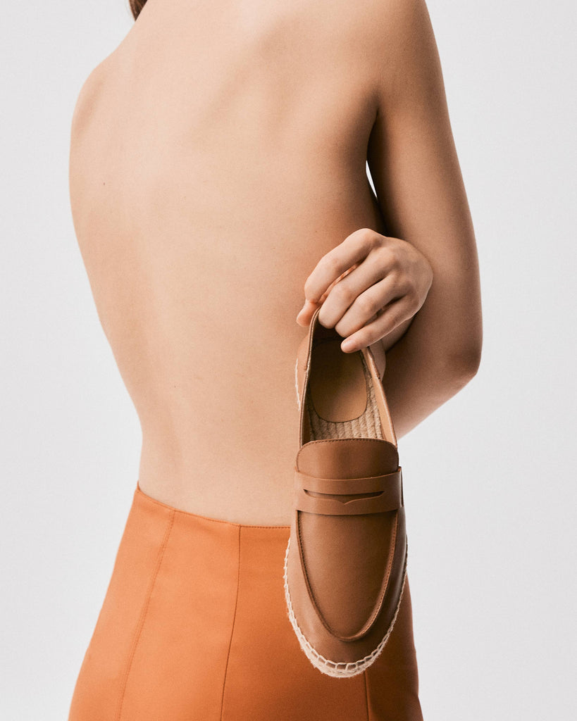 Alpargata plana Keule estilo mocasín en napa y suela de yute.