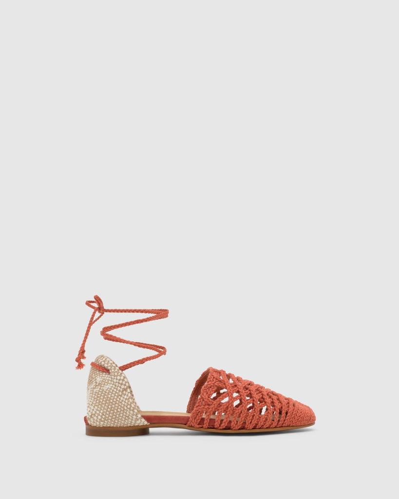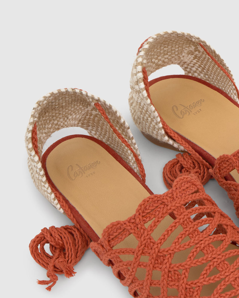 Alpargata plana Genoveva en algodón trenzado a mano con cierre de cordones a juego y plantilla acolchada.