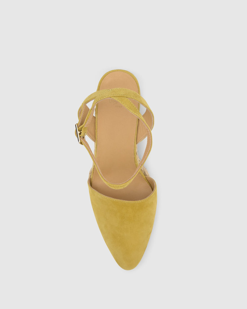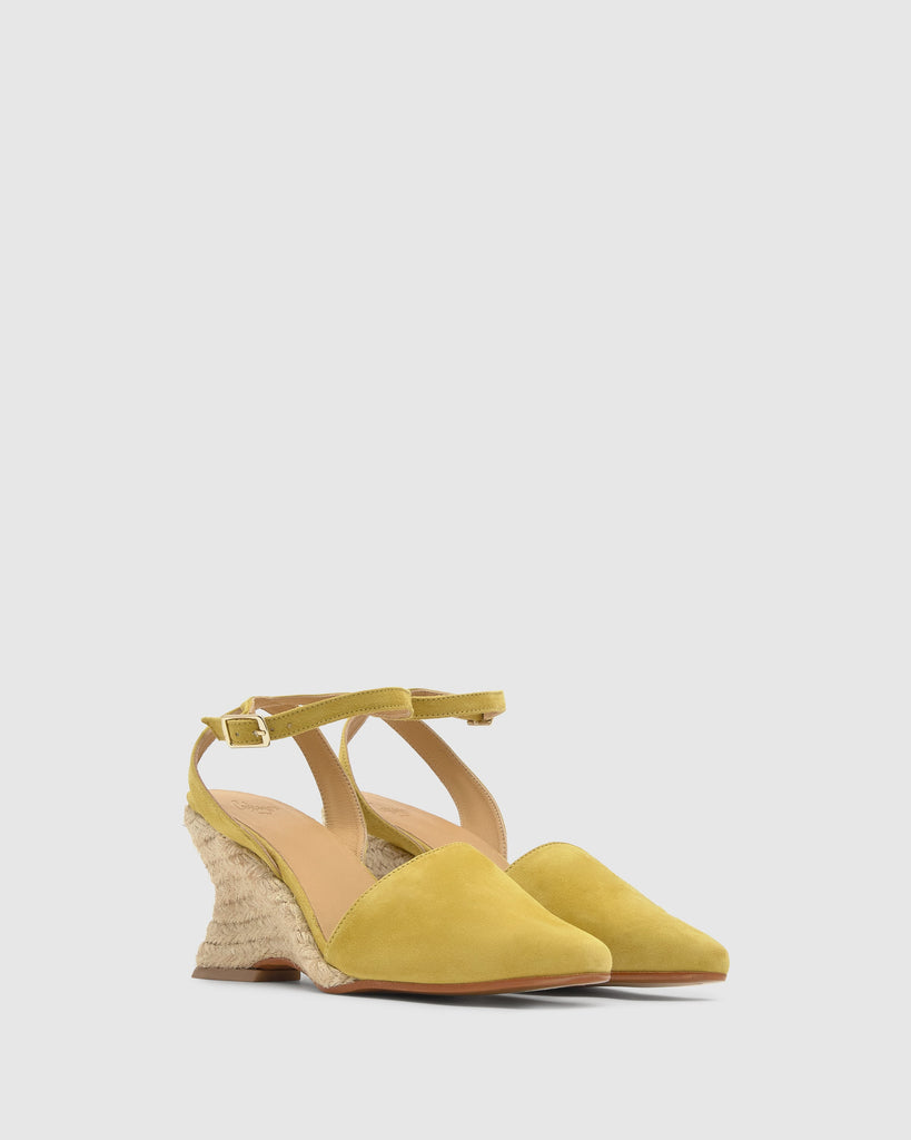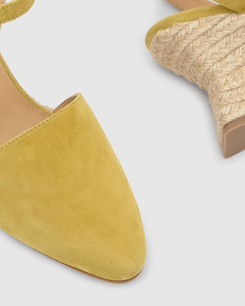 Alpargata Judi en ante con cierre de pulsera, plantilla acolchada, punta afilada y cuña de yute de 8cm.