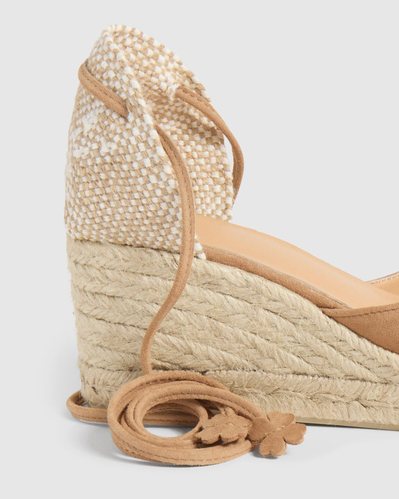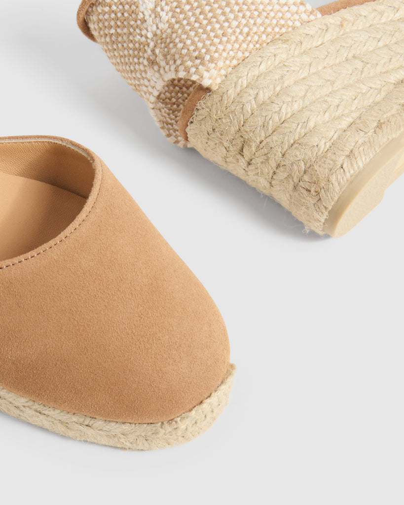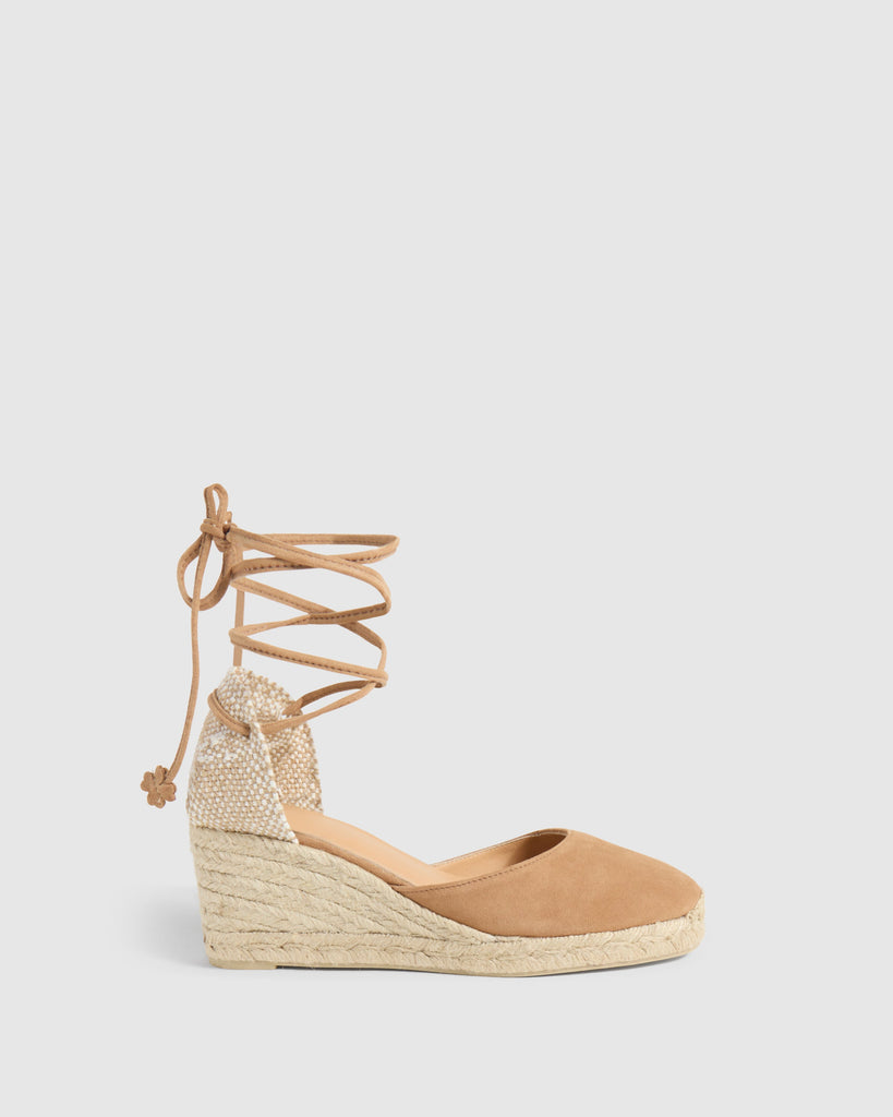 Carina, nuestras icónicas alpargatas, vuelven como cada temporada para convertirse en un imprescindible atemporal de tu fondo de armario. Confeccionadas en España en ante, las alpargatas Carina presentan puntera cerrada redondeada, cierre mediante lazada, cuña de 7cm y suela de caucho vulcanizado.