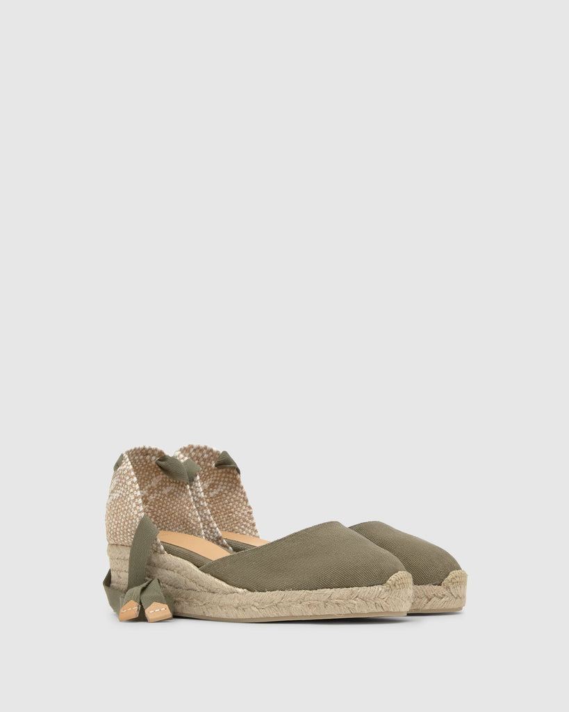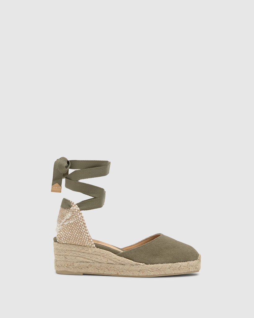 Alpargata Carina en algodón orgánico lavado con cierre de lazada, plantilla acolchada y cuña de yute de 5 cm.