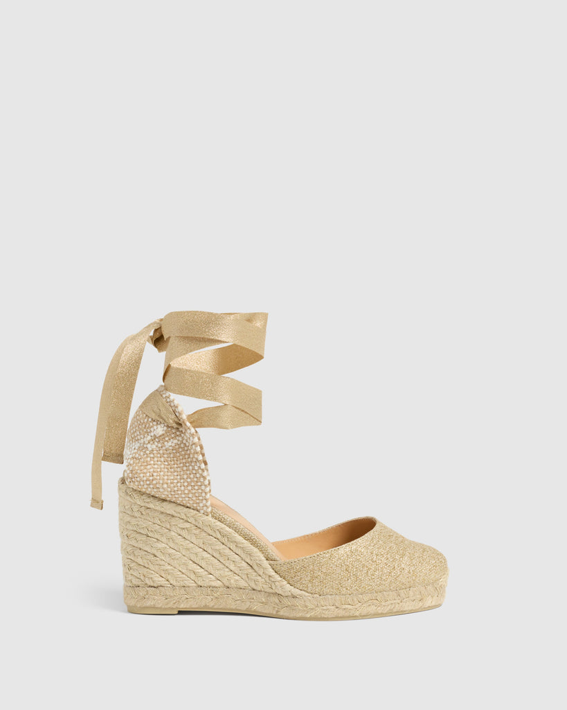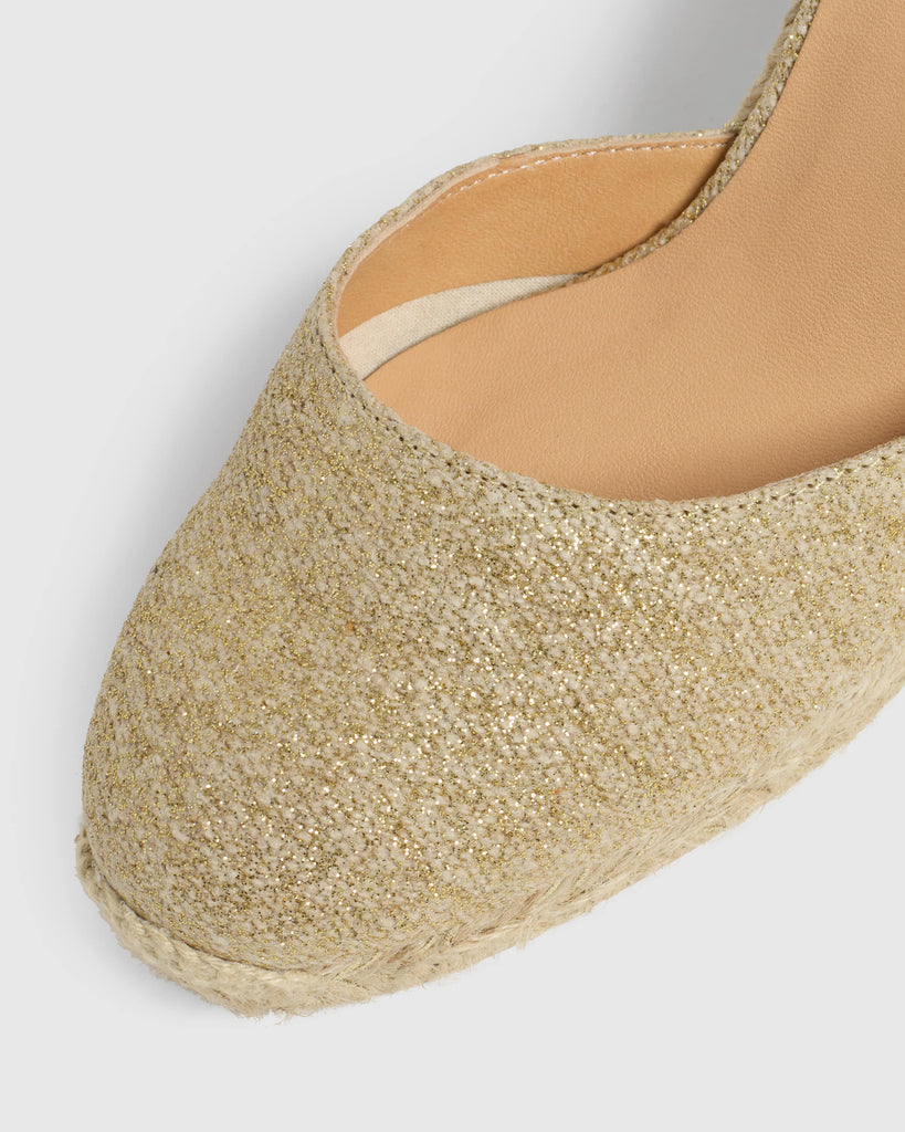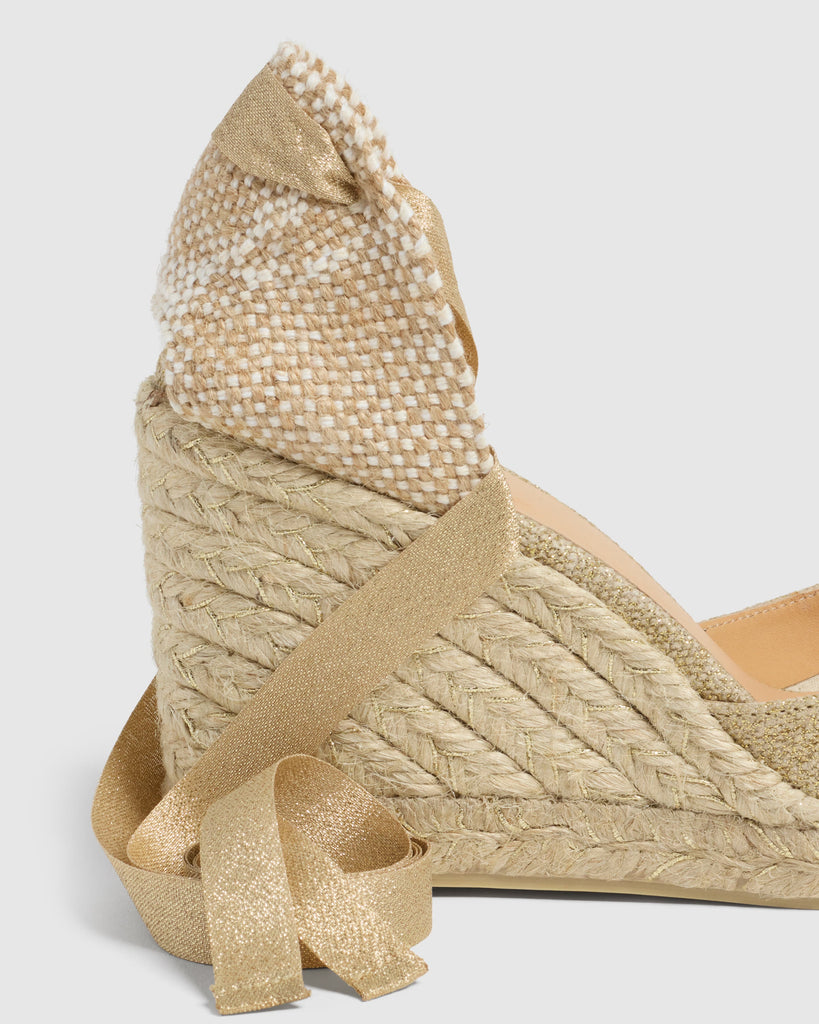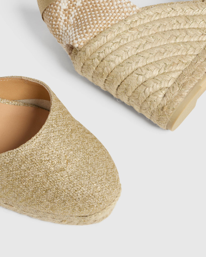 Carina, nuestras icónicas alpargatas vuelven como cada temporada para convertirse en un imprescindible atemporal de tu fondo de armario. Confeccionadas en España en lino natural con acabado metalizado, las alpargatas Carina presentan puntera cerrada redondeada, cierre mediante lazada, cuña de 9cm y suela de caucho vulcanizado.