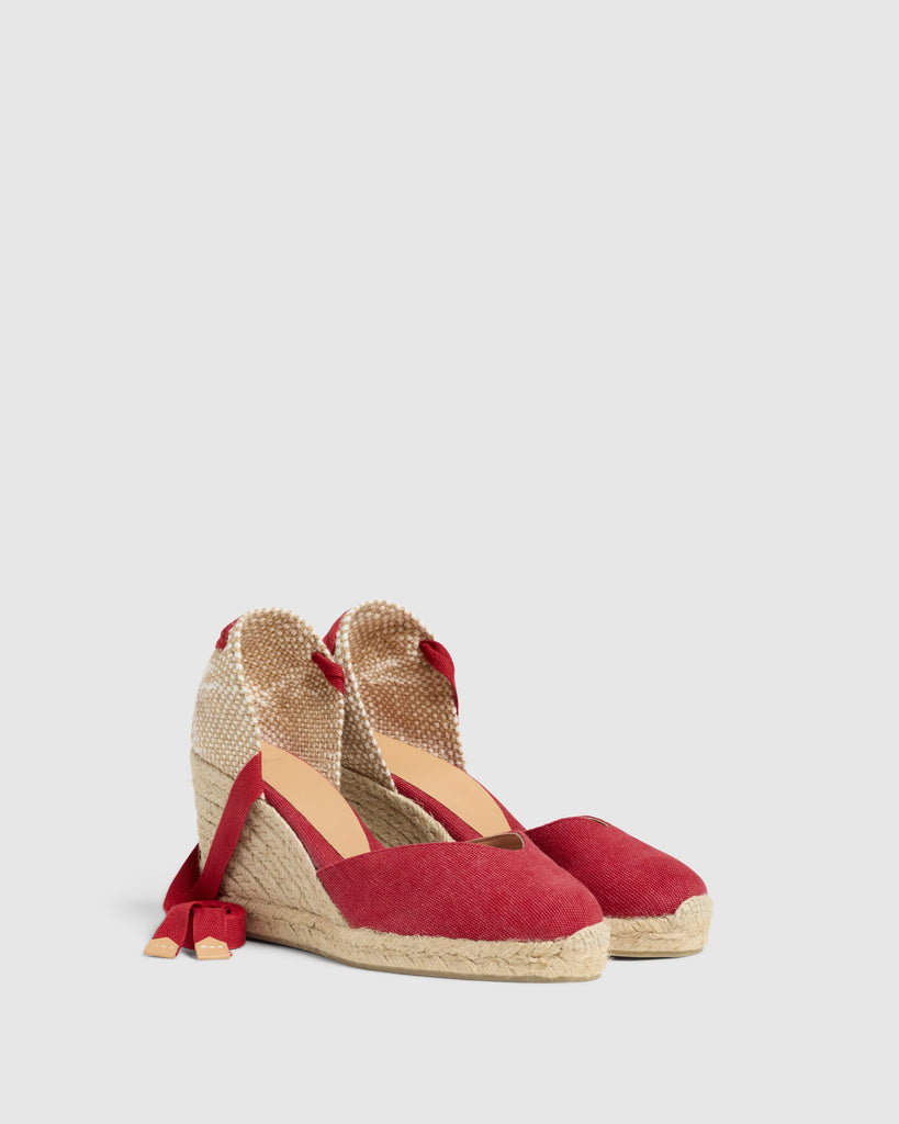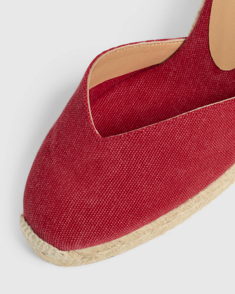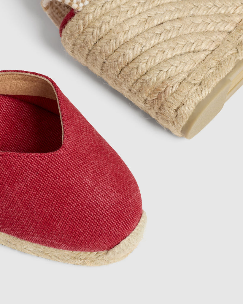 Emana estilo único con Chiara, las icónicas alpargatas que te acompañarán en tus mejores ocasiones. Confeccionadas en España en algodón orgánico lavado sostenible, las alpargatas Chiara presentan escote a V, puntera cerrada redondeada, cierre mediante lazada, cuña de 9cm y suela de caucho vulcanizado.