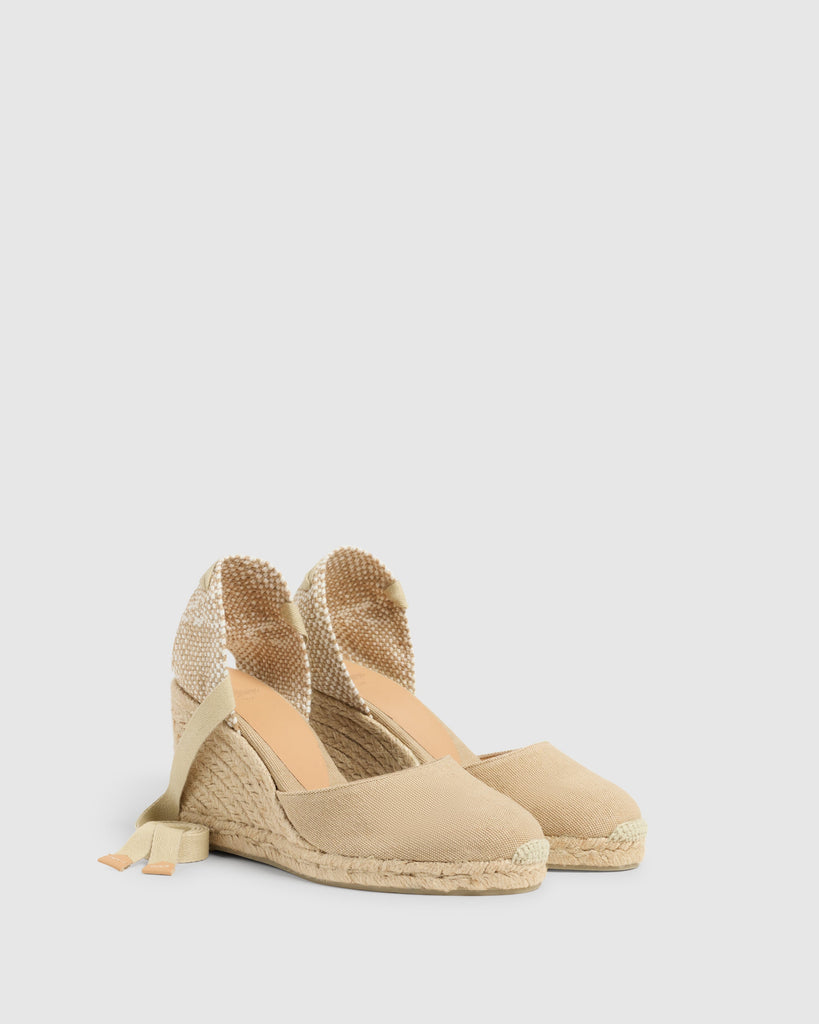 Carina, nuestras icónicas alpargatas vuelven como cada temporada para convertirse en un imprescindible atemporal de tu fondo de armario. Confeccionadas en España en algodón orgánico certificado y acabado lavado sostenible. Las alpargatas Carina presentan puntera cerrada redondeada, cierre mediante lazada, cuña de 9cm y suela de caucho vulcanizado.