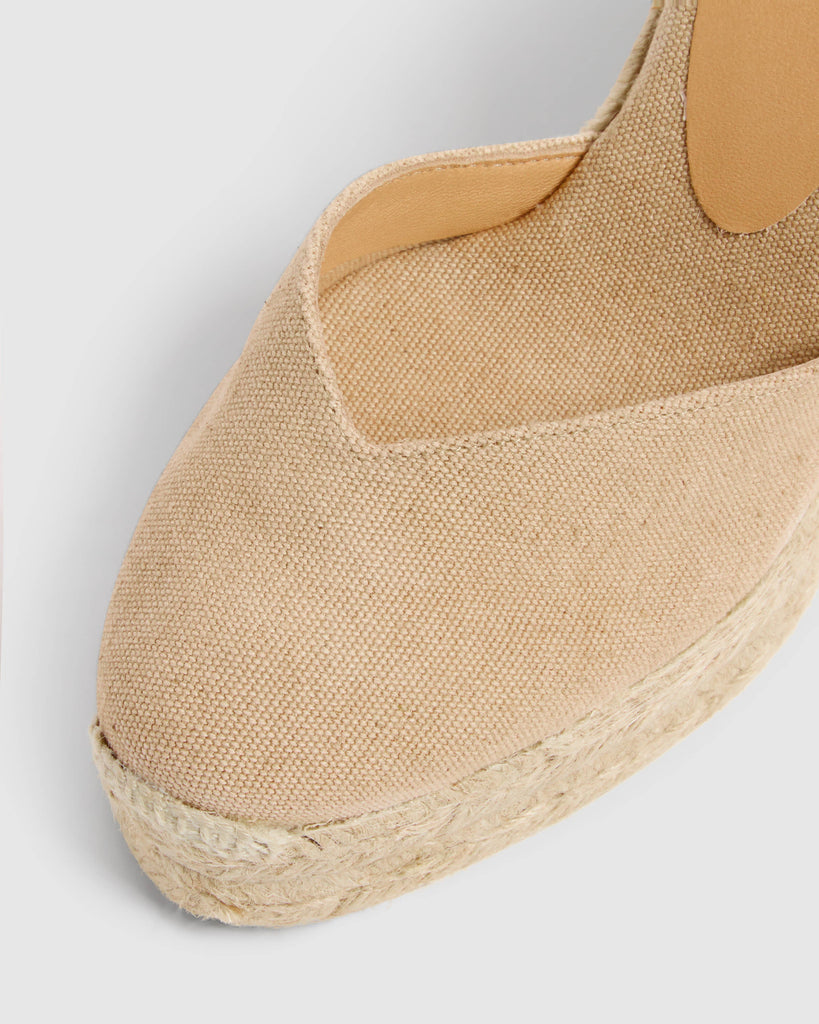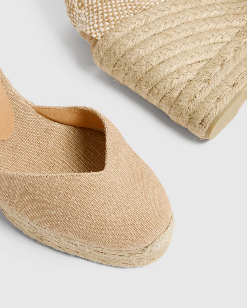 EMANA ESTILO ÚNICO CON CHIARA, LAS ICÓNICAS ALPARGATAS QUE TE ACOMPAÑARÁN EN TUS MEJORES OCASIONES. CONFECCIONADAS EN ESPAÑA EN ALGODÓN ORGÁNICO LAVADO Y ACABADO LAVADO SOSTENIBLE. LAS ALPARGATAS CHIARA PRESENTAN ESCOTE A V, PUNTERA CERRADA REDONDEADA, CIERRE MEDIANTE LAZADA, CUÑA DE 11 CM CON DOBLE PLATAFORMA DE YUTE Y SUELA DE CAUCHO VULCANIZADO.