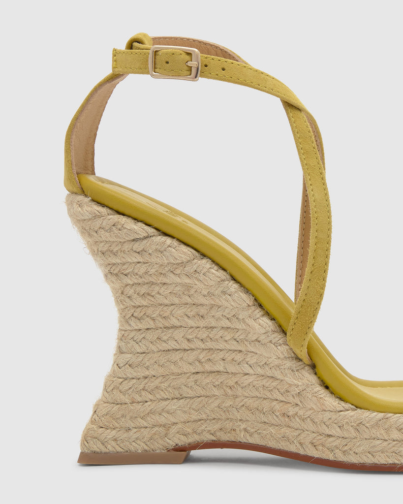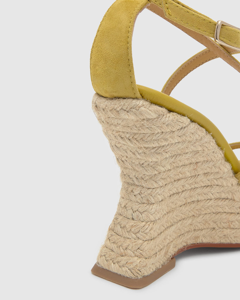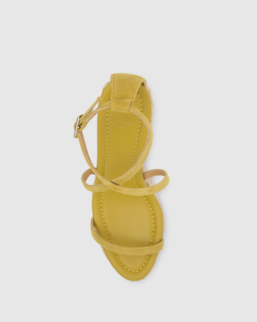 Sandalia Joana en ante con cierre de pulsera, plantilla acolchada y cuña de yute de 11cm.