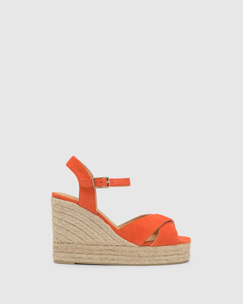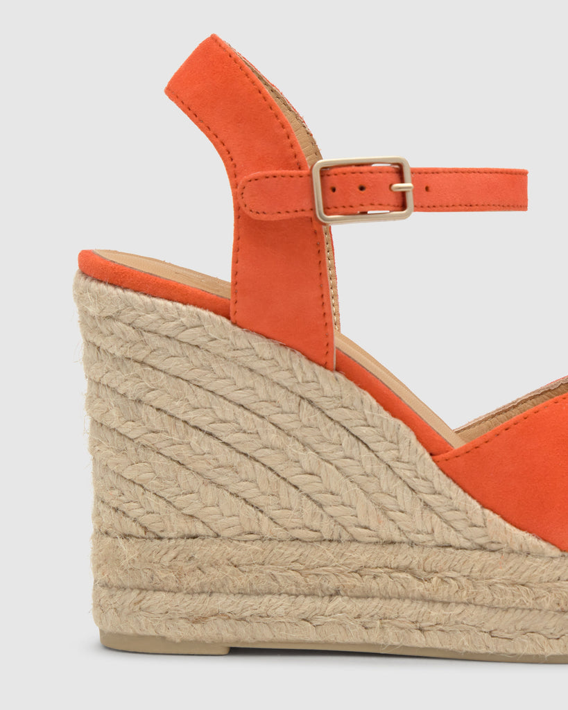 Sandalia Blaudell en ante con cierre de pulsera, plantilla acolchada y cuña de yute de 11cm con doble plataforma.